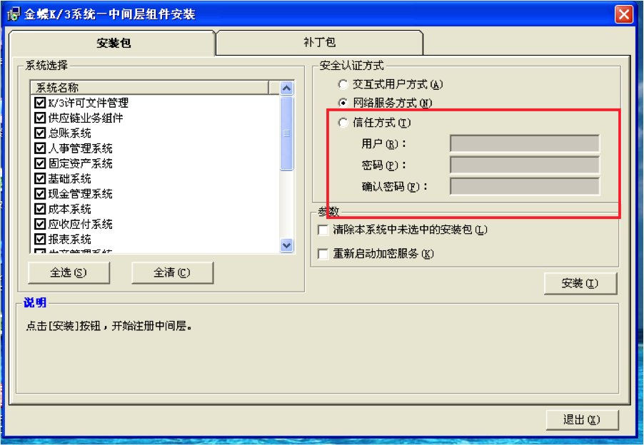 金蝶軟件報(bào)表打不開是因?yàn)檐浖虚g層沒有采用“信任方式”進(jìn)行注冊(cè)。