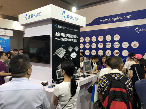 智博會現(xiàn)場,金蝶云的展位擠滿了前來咨詢了解的參觀者