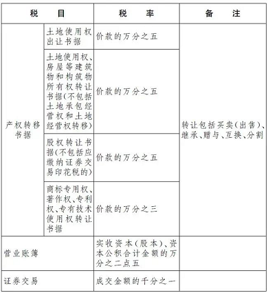 根據(jù)應(yīng)納稅憑證性質(zhì)的不同,印花稅分別采用比例稅率和定額稅率,具體稅目、稅額標(biāo)準(zhǔn)詳見(jiàn)《印花稅稅目、稅率(稅額標(biāo)準(zhǔn))表》。此外,根據(jù)國(guó)務(wù)院的專(zhuān)門(mén)規(guī)定,股份制企業(yè)向社會(huì)公開(kāi)發(fā)行的股票,因買(mǎi)賣(mài)、繼承、贈(zèng)與所書(shū)立的股權(quán)轉(zhuǎn)讓書(shū)據(jù),應(yīng)當(dāng)按照書(shū)據(jù)書(shū)立的時(shí)候證券市場(chǎng)當(dāng)日實(shí)際成交價(jià)格計(jì)算的金額,由出讓方按照1‰的稅率繳納印花稅。
