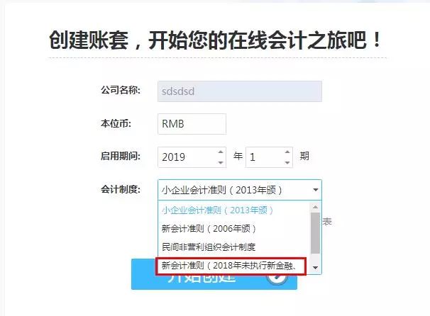 創(chuàng)建賬套時選擇新會計準則(2018年未執(zhí)行新收入新金融準則)