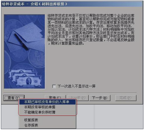 1 成本核算前提條件(結(jié)賬預(yù)檢查):