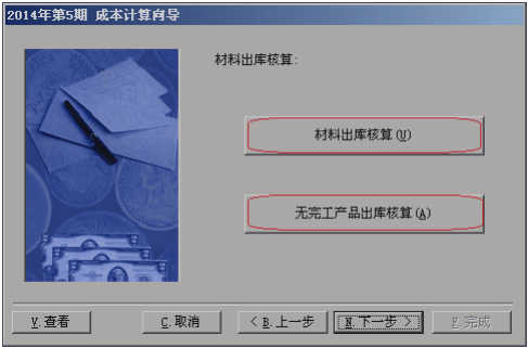 10.1 單擊【實(shí)際成本】→【成本計(jì)算】→【產(chǎn)品成本計(jì)算】,根據(jù)系統(tǒng)提示依次單擊【下一步】,在如下界面依次單擊【材料出庫(kù)核算】、【無(wú)完工產(chǎn)品出庫(kù)核算】,然后再單擊【下一步】。
