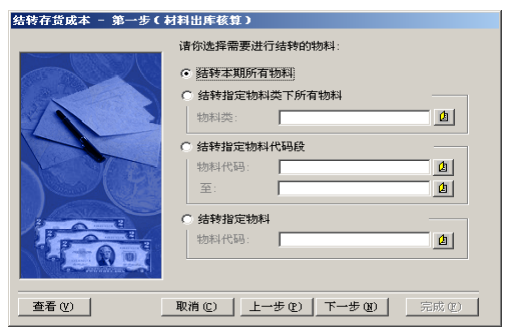 2.1. 進入【存貨核算】→【出庫核算】→【材料出庫核算】,單擊“下一步”,選擇“結(jié)轉(zhuǎn)本期所有物料”。