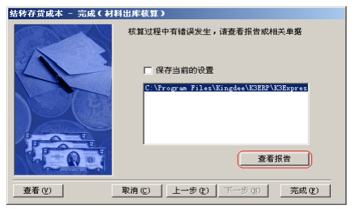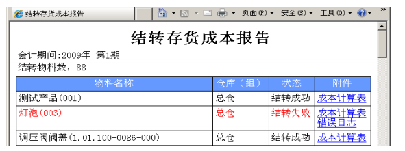 2.4. 核算完畢,我們可以通過‘查看報告’得到核算結(jié)果,其中藍色字體的是核算成功的,以紅色字體顯示的則是核算有問題的物料,單擊‘成本計算表’或‘錯誤日志’,可以幫助檢查問題原因。