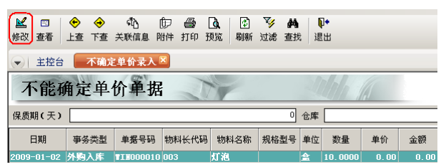 3. 不確定單價單據(jù)維護:因某些特殊原因,導致經(jīng)過核算之后,仍不能正確取得單價的單據(jù),我們可以在這里對其直接手動修改。