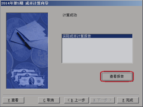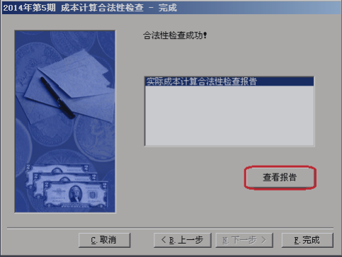 10.2 根據(jù)系統(tǒng)提示依次單擊【下一步】,依次進(jìn)行費(fèi)用分配與實(shí)際成本計(jì)算,核算完畢,單擊【查看報(bào)告】可以查看核算結(jié)果是否有錯(cuò)誤,如有錯(cuò)誤(紅色字體顯示),根據(jù)系統(tǒng)提示修正錯(cuò)誤后重新進(jìn)行成本核算。