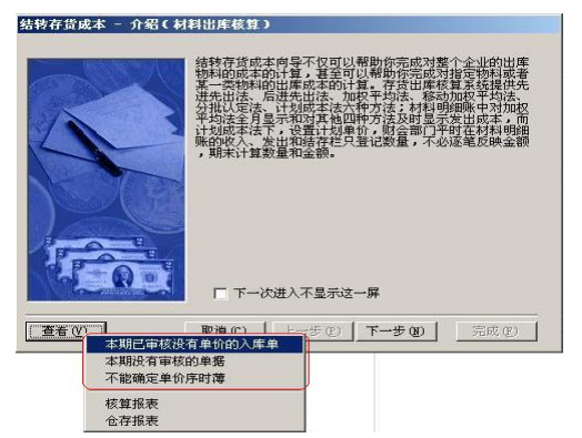 2.1. 進入【存貨核算】→【出庫核算】→【材料出庫核算】,單擊“下一步”,選擇“結(jié)轉(zhuǎn)本期所有物料”。